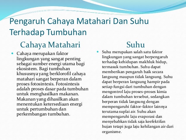 intraksi dan pengaruh cahaya dan suhu terhadap tumbuhan . Sumber Gambar : www.slideshare.net
